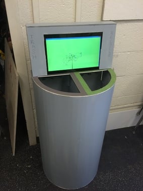 ※写真は去年のIAP、インタラクティブデザインの授業のプロジェクトで作った、ユーザーの環境への気配りがスクリーンの木に反映されるゴミ箱です。センサーでゴミを検出して、それをマイクロコントローラーで処理してスクリーンに反映させています。