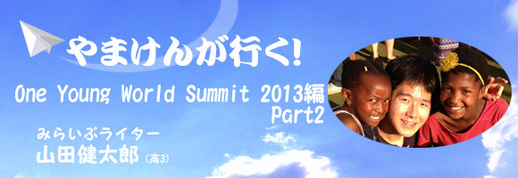 One Young World Summit 2013に、日本代表として参加した、やまけん(山田健太郎/桐朋高校3年)君に、刺激的だった南アフリカ体験を振り返ってもらいました。