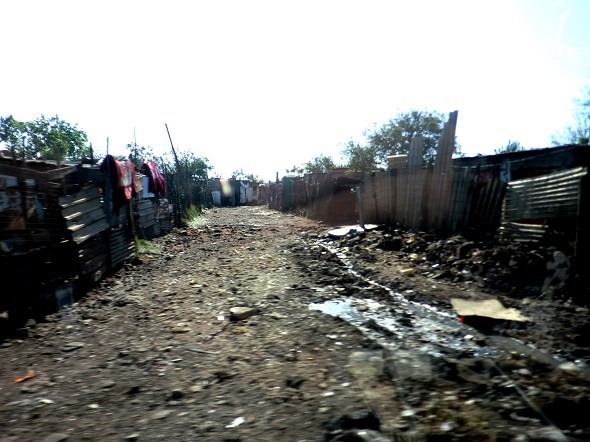 ホテルや会議場のあったサントン地区から黒人居住地区ソウェトに向かう途中のバスで撮影。写真だとわかりにくいのですが、道路沿いはゴミだらけ!