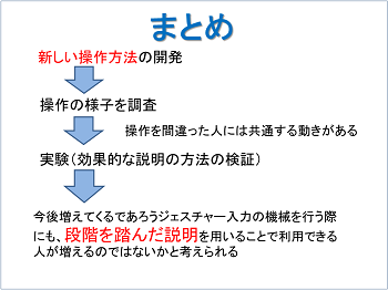 ジェスチャー入力する機械を使うためには、段階を踏んだ説明が有効ということが明らかになりました。