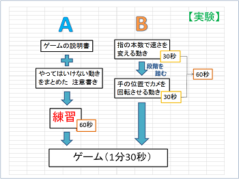 それを被験者にやってもらうための、適切なインストラクションA、B案を考案しました。