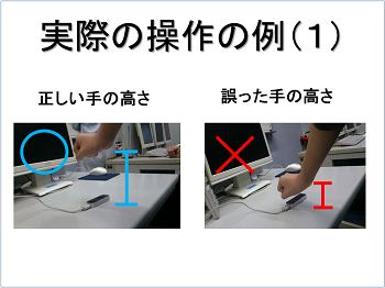 新しい操作法で実際にやってみると、正しい手の動かし方、誤った手の動かし方が発見できました。