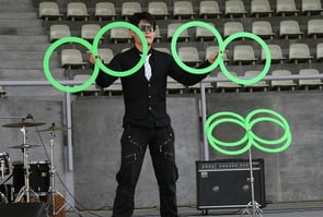 とにかくいろんなパフォーマンスをいっぱい見て、使えそうなものを「盗んで」います。大道芸だけでなく、ダンスやコントなんかも見ます。依頼ごとにその場に合わせたストーリーや動きをゼロから作っています。今日やったダンスは、1か月くらい練習しました。
