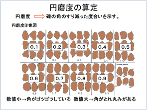 円磨度は、Krumbeinの円磨度印象図から、数値で求めました。