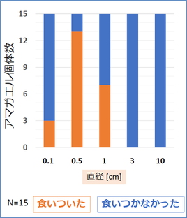 実験3 アマガエルは自分より大きなものをエサと認識しない!