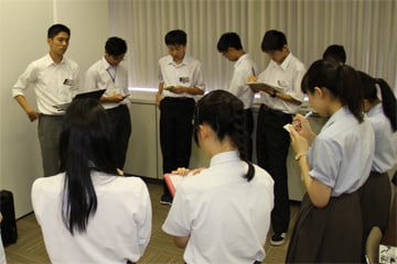 関西大会高校生会議の特徴の一つが、申し込みが個人であるため、大使が必ずしも同じ学校同士のペアではないことです(※2)。そのため、実際に顔を合わせるのは会議当日、という人もいます。実際に別々の学校でペアを組んだ人に聞いてみると、事前の準備や役割分担については、6月中旬に担当国が決まってから、SNSなどで綿密にやりとりをしたのだそうです。