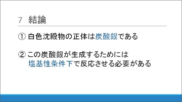 しかし、実際にこの実験を行ってみると、白色沈殿が生じることがありました。