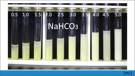 NaHCO3を加えた場合、若干淡黄色に近い白色沈殿が生じました。
