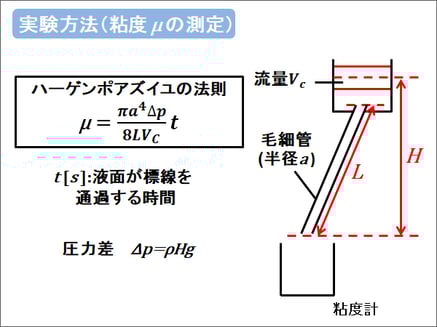 粘度は、「ハーゲン・ポワズイユの法則」という公式を利用して求められます。
