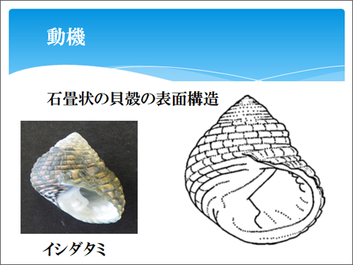 私たちはイシダタミの貝殻の表面構造に注目し、次のような仮設を立てました。