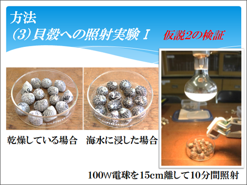 (3)貝殻への照射実験(仮説2.の検証)