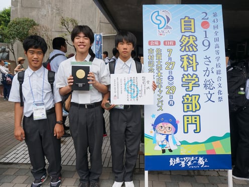 生徒交流会の後に行われた表彰式では、生物部門で「春野高校」の名が呼ばれました。そのとき、研究してきて本当に良かったと思いました。表彰のためステージに立ったときは、あまりの緊張に膝がガクガクしました。これまでにいろいろな大会に出場して、受賞する機会がありましたが、今回が一番うれしく、かけがえのないものになりました(森下くん)。