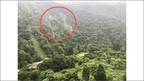 またこのポイントでは、現在も山崩れが起こっていることがわかり、斜面が急であったこともあり、隆起量が大きかったのではないかと考えました。