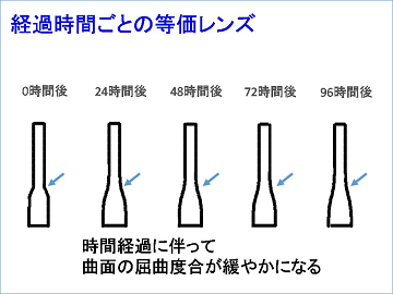 さらに、時間の経過に従って、等価レンズの屈曲度合いが緩やかになることもわかりました。