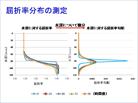 さらに屈折率を水深で微分することによって、水深に対する屈折率勾配が求められました。