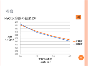 私たちは自作のシェイカーによって水溶液の比熱の測定に成功しました。また、『改訂4版化学便覧基礎編II』に記載されているCaCl2 4.0mol/kg水溶液の比熱の値について出版社に問い合わせたところ、やはり誤植であるということでした。