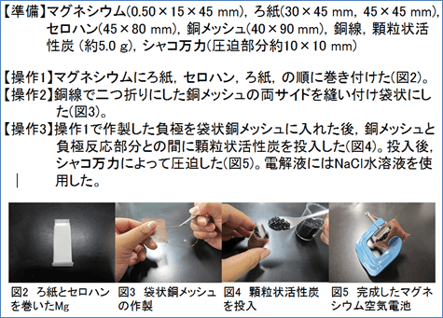 ・「空気マグネシウム電池の研究」齊藤竜馬(宮崎県立宮崎大宮高校:平成27年度全校高等学校総合文化祭論文集)