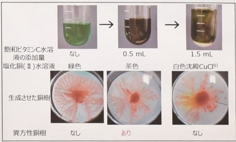 銅本来の色の銅樹の生成にはビタミンC水溶液が必要